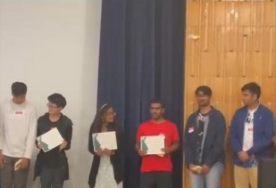In this picture, Shrish was awarded a volunteer appreciation certificate for helping over 40 students improve their AMC 8 scores.